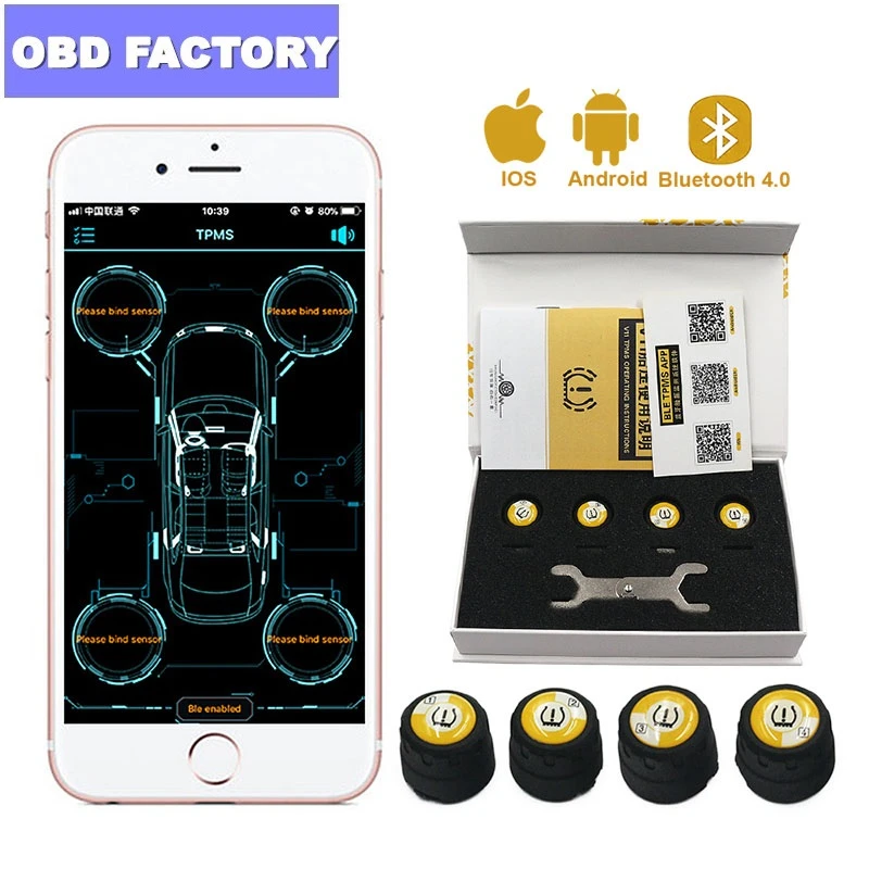 Tpms Bluetooth 4 0 Sensors Low Energy Tire Pressure Monitoring System 4 Internal Sensor App For Iphone Ios Android M Repair Tire Pressure Monitoring System Obd